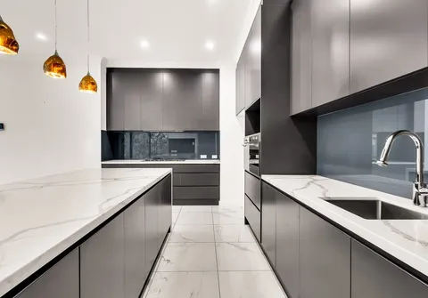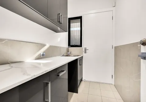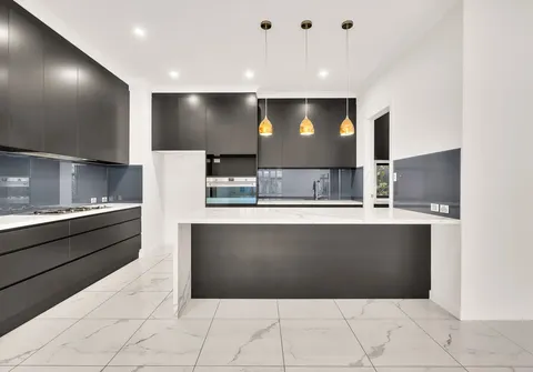 - Sleek on-trend kitchen with gas cooktop, feature tiled splash back, ample cupboard and bench space complete with breakfast bar with feature pendant lighting