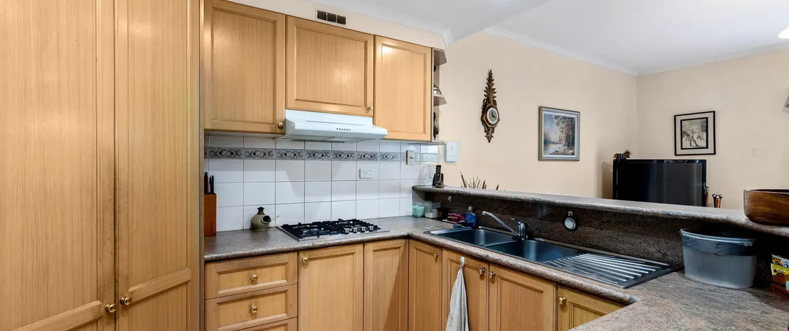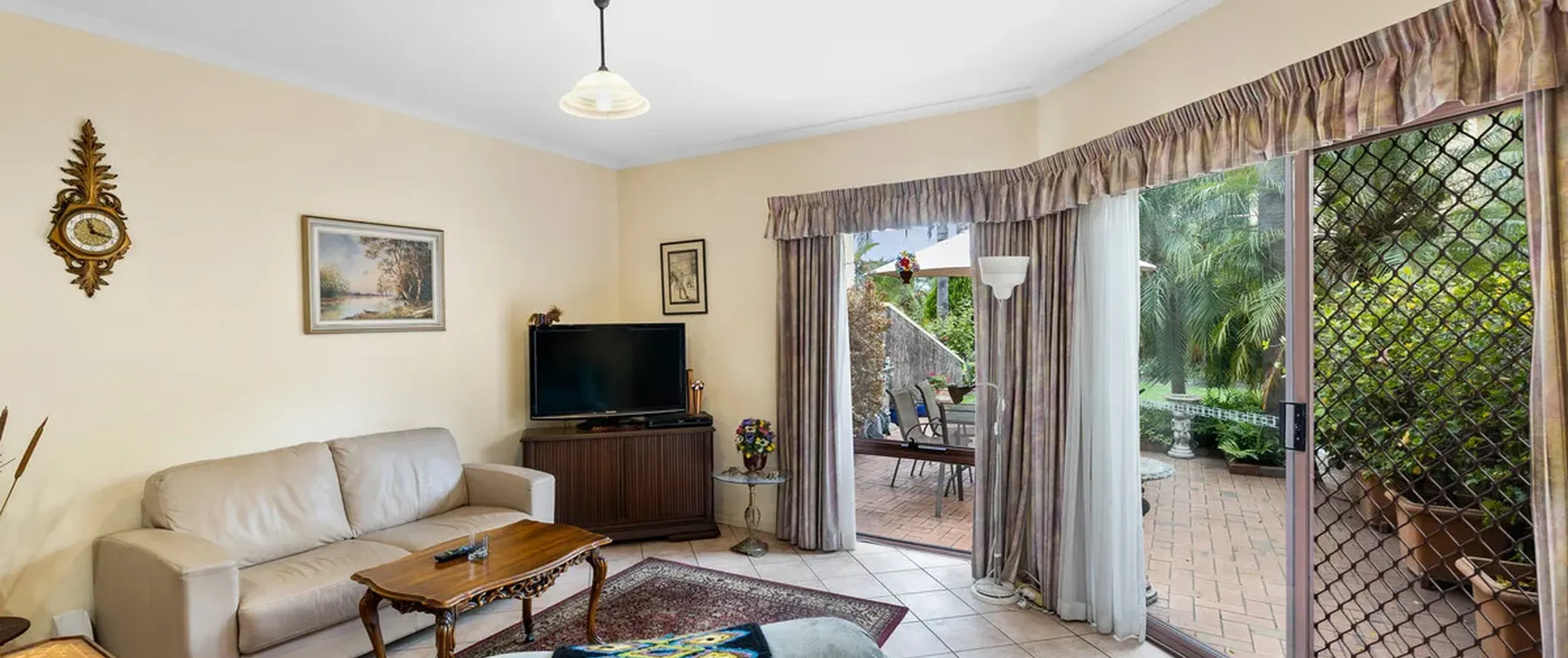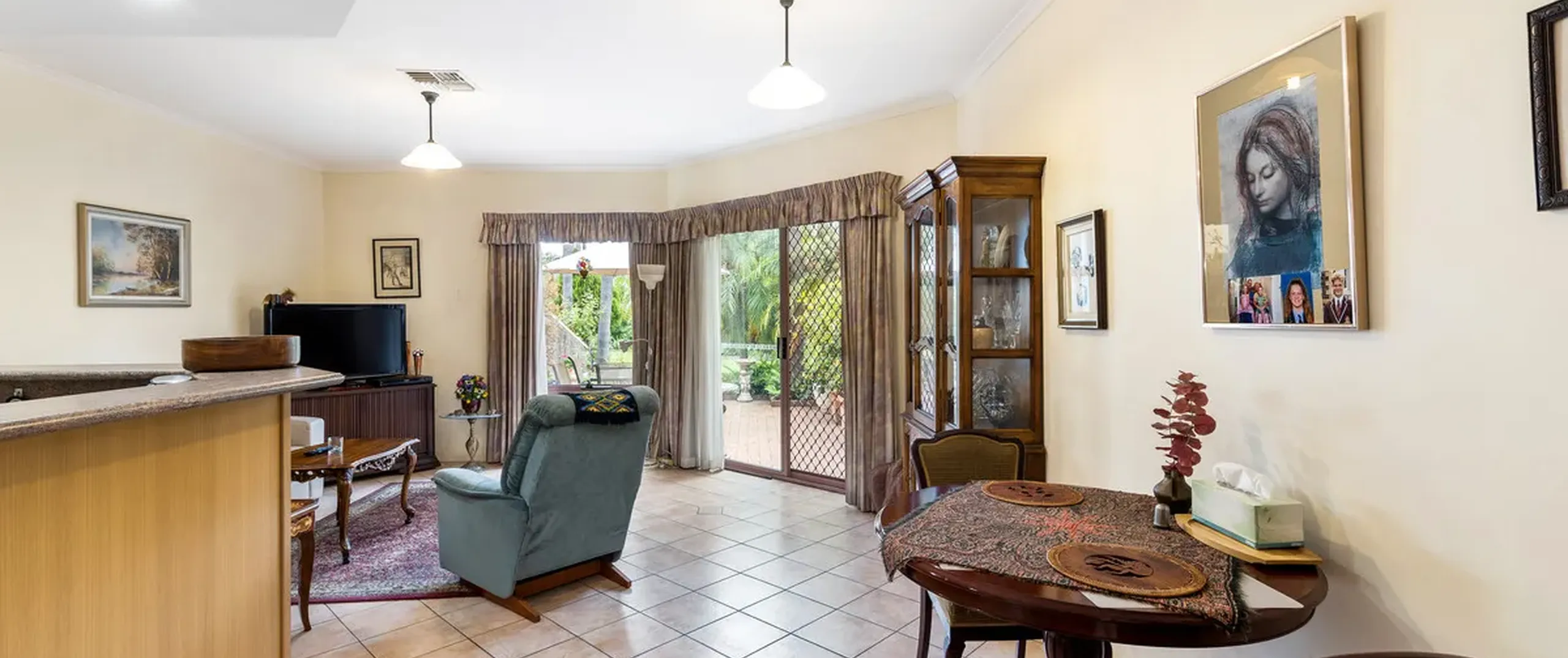 - Open-plan living and kitchen with lounge room and external access to outside paved patio area