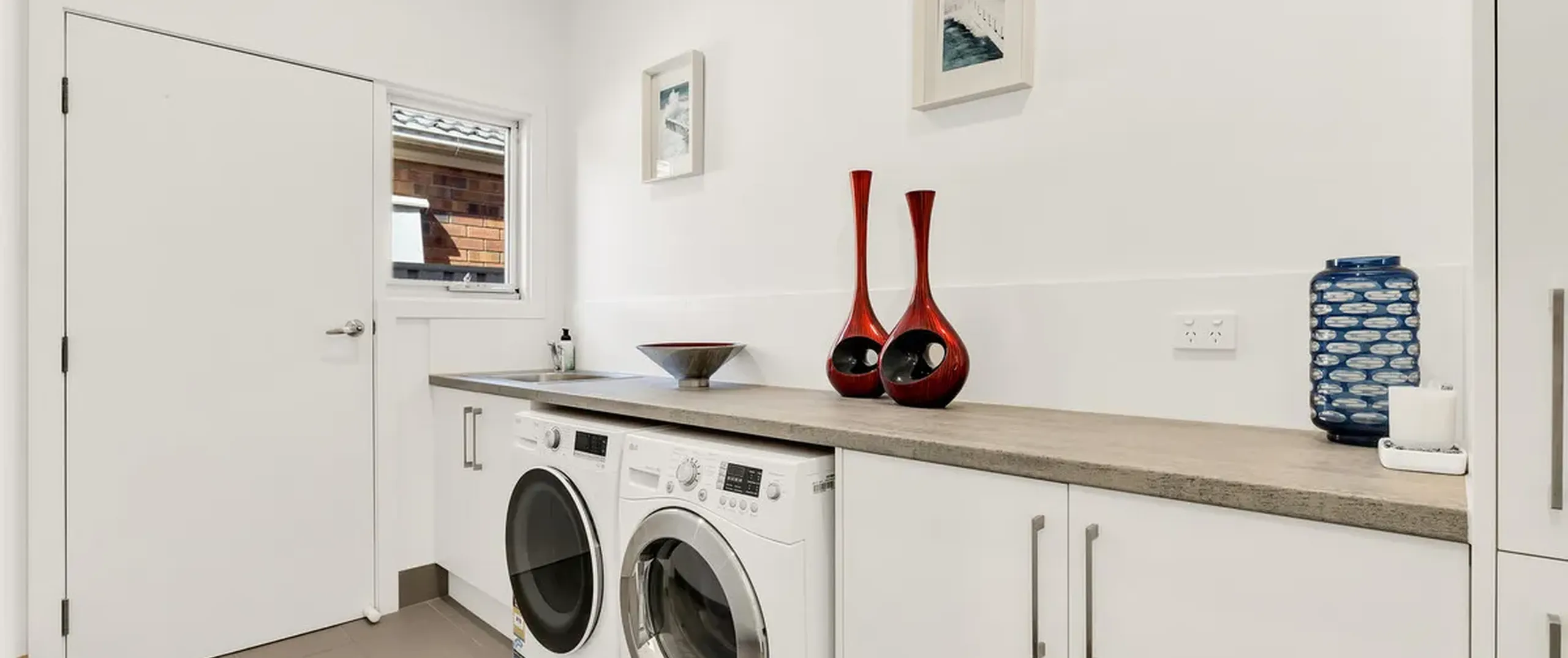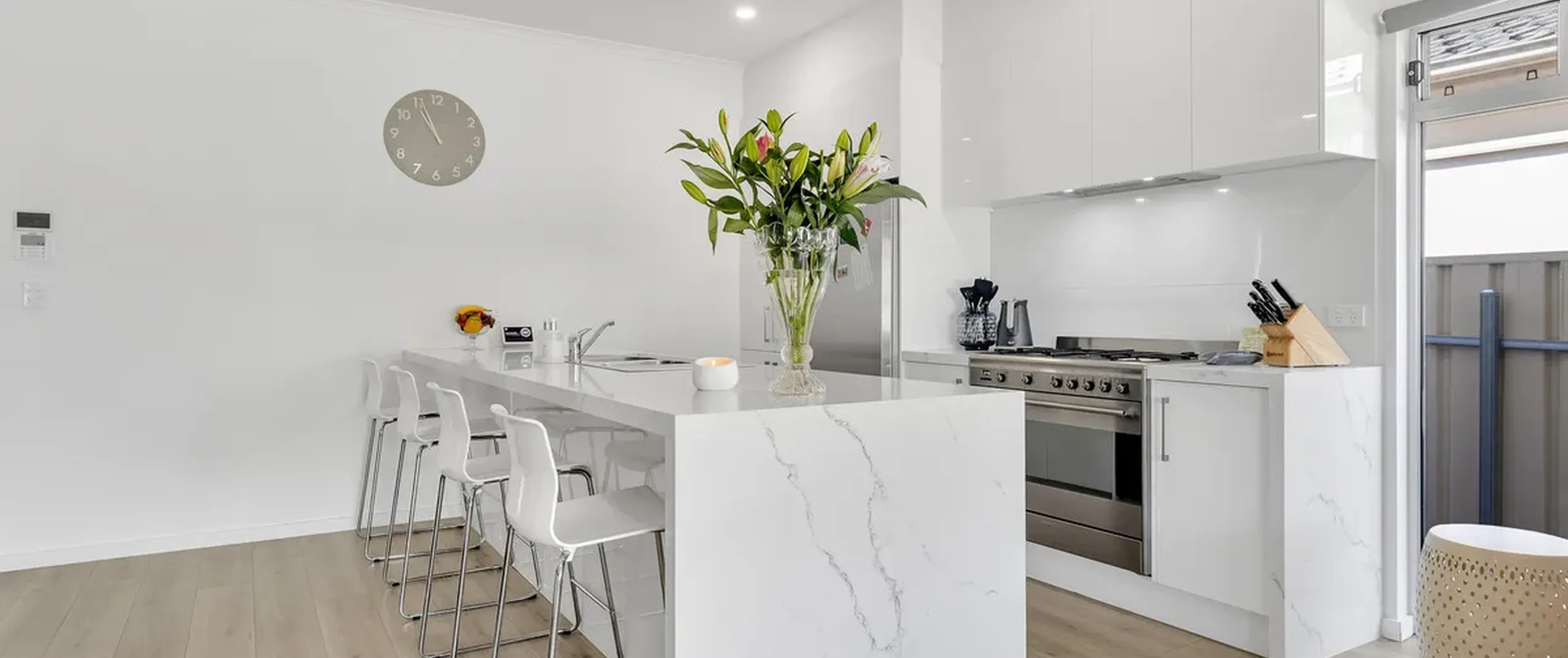 - Modern kitchen with ample cupboard and bench space with stainless steel appliances including Smeg 5 burner, dishwasher and dual sinks