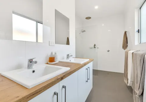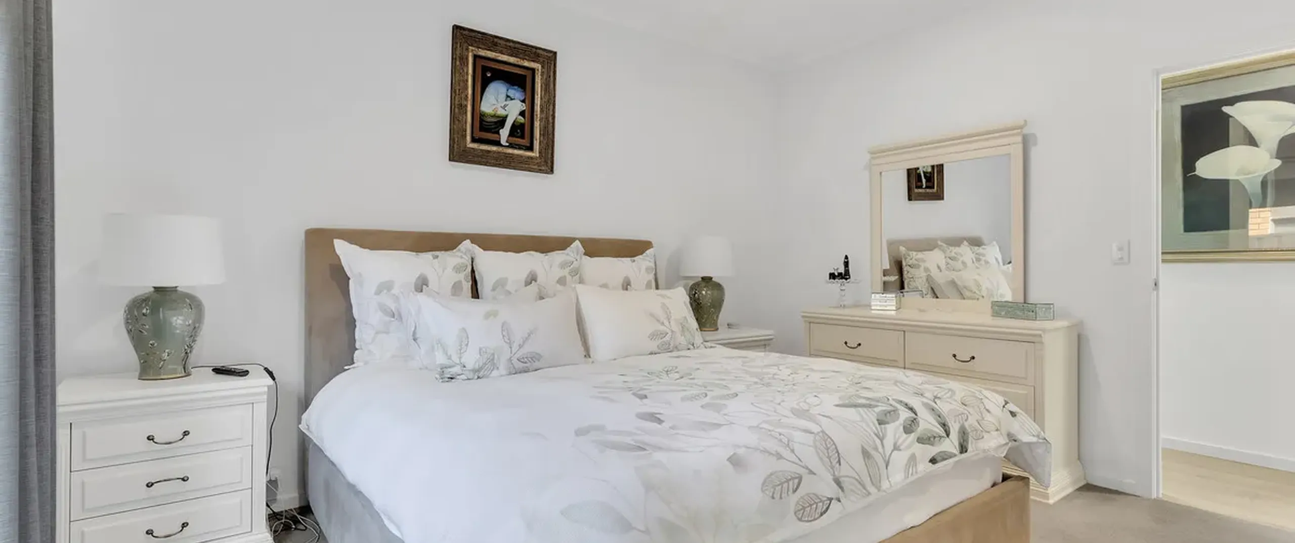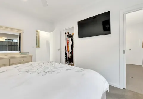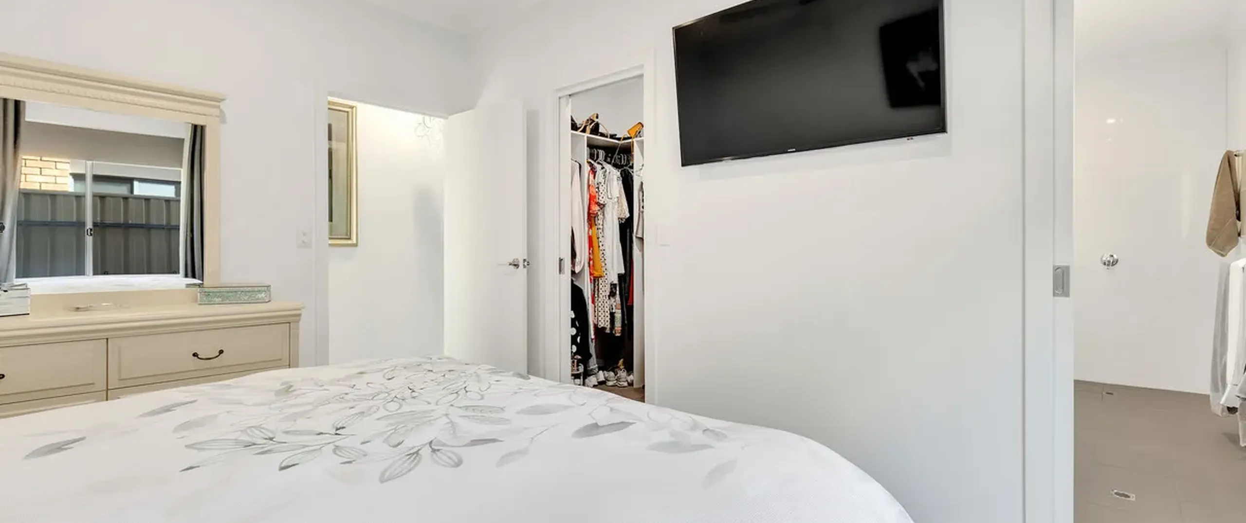- Master bedroom complete with ceiling fan, ensuite with double vanity andwalk-in robe (TV brackets on wall to remain)