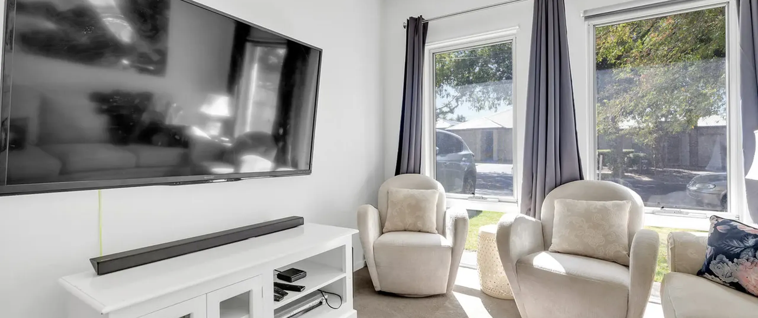 - 3 spacious bedrooms with front room flexible to be 2nd living area or 4th bedroom