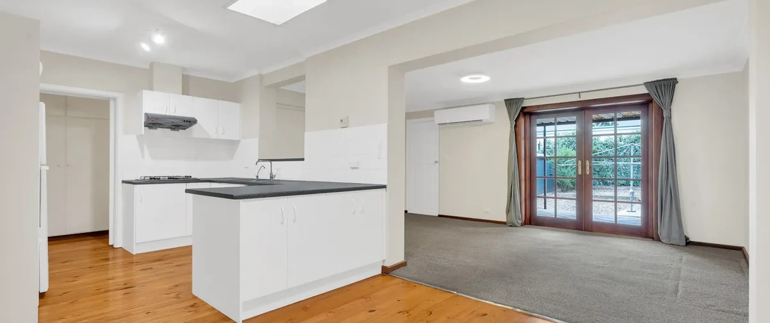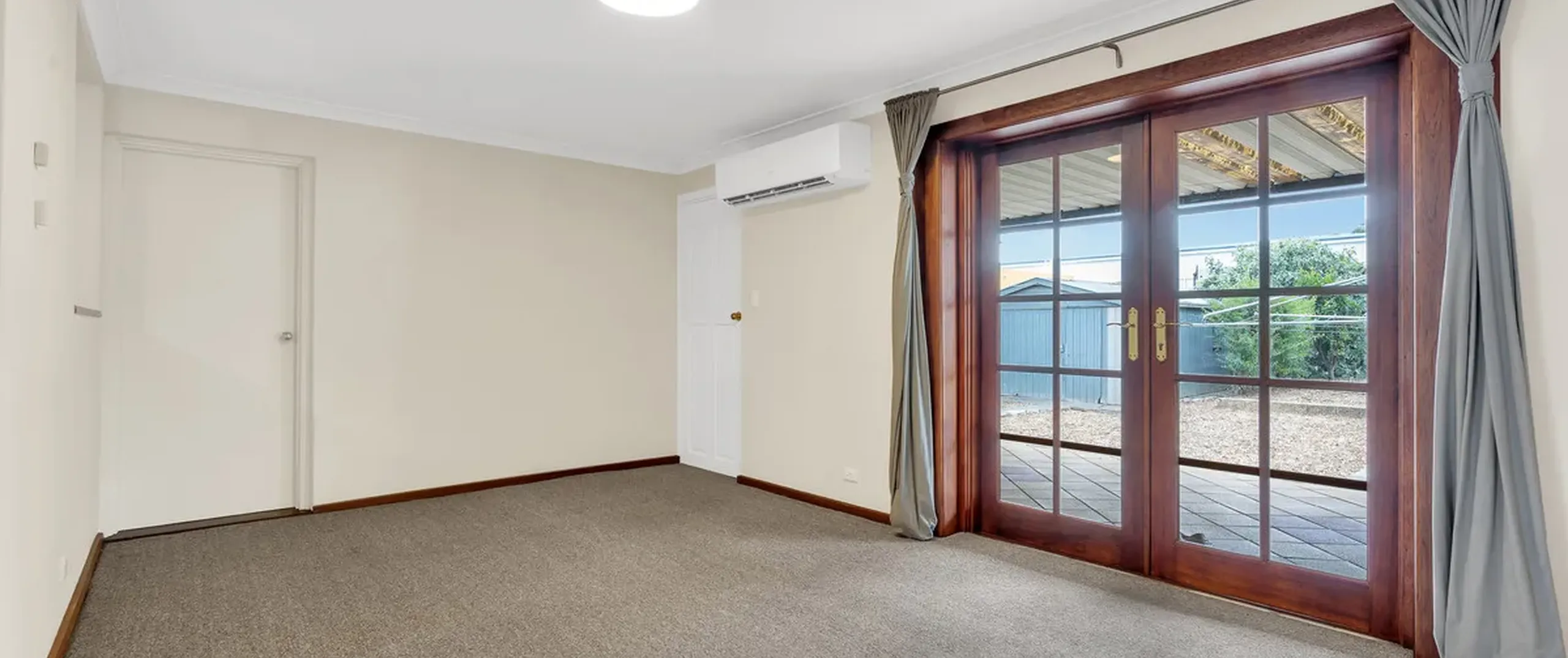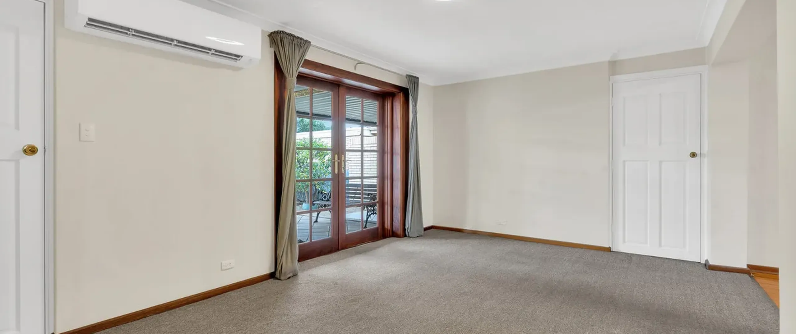 - Second carpeted living area with wall split system air conditioning and double doors opening to the backyard