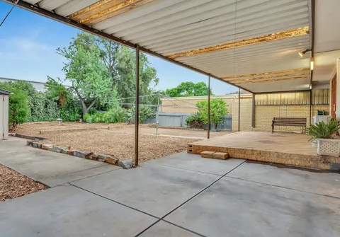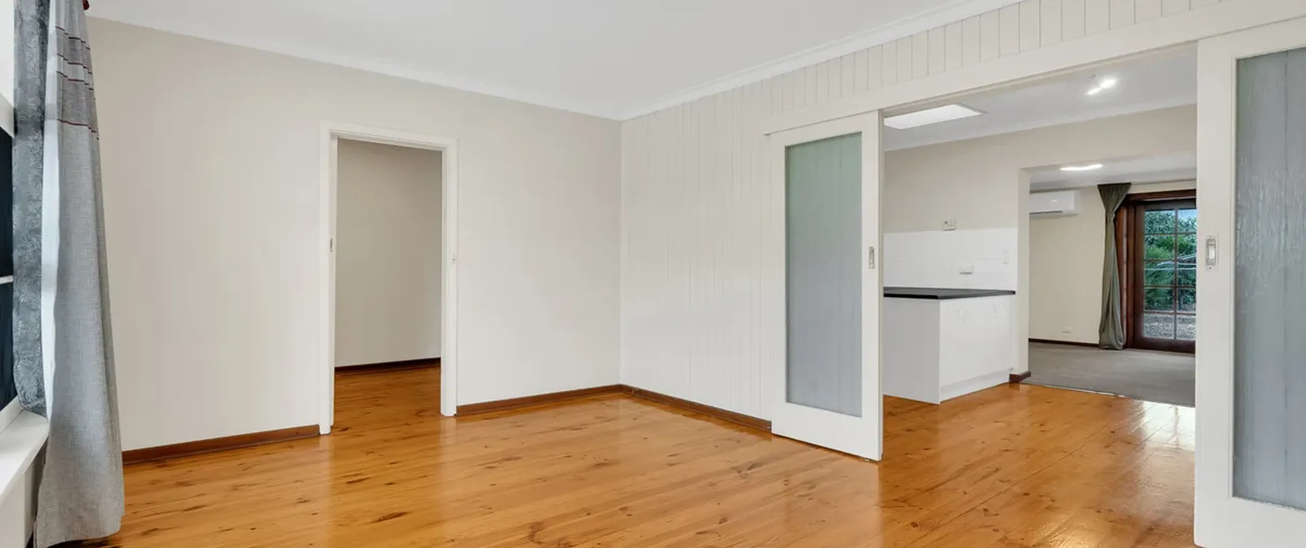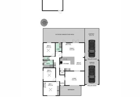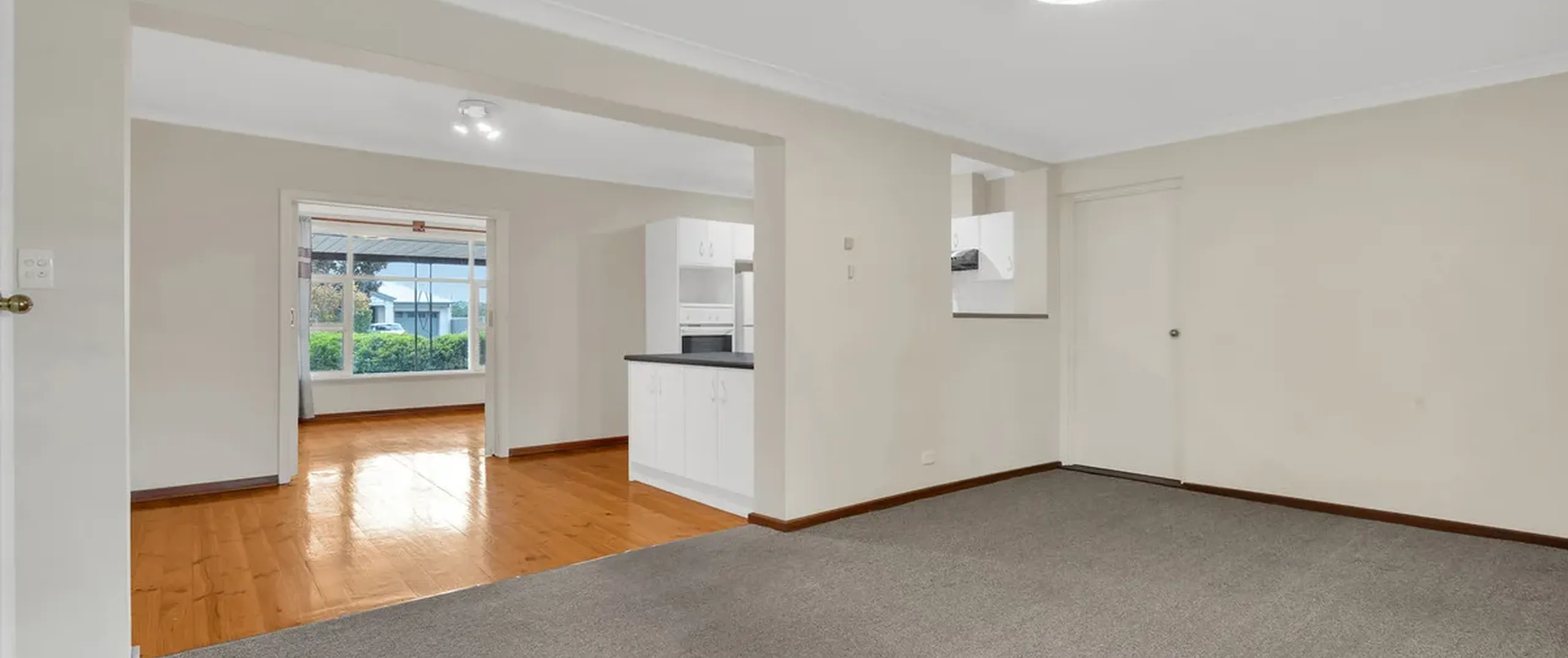 - Second carpeted living area with wall split system air conditioning and double doors opening to the backyard