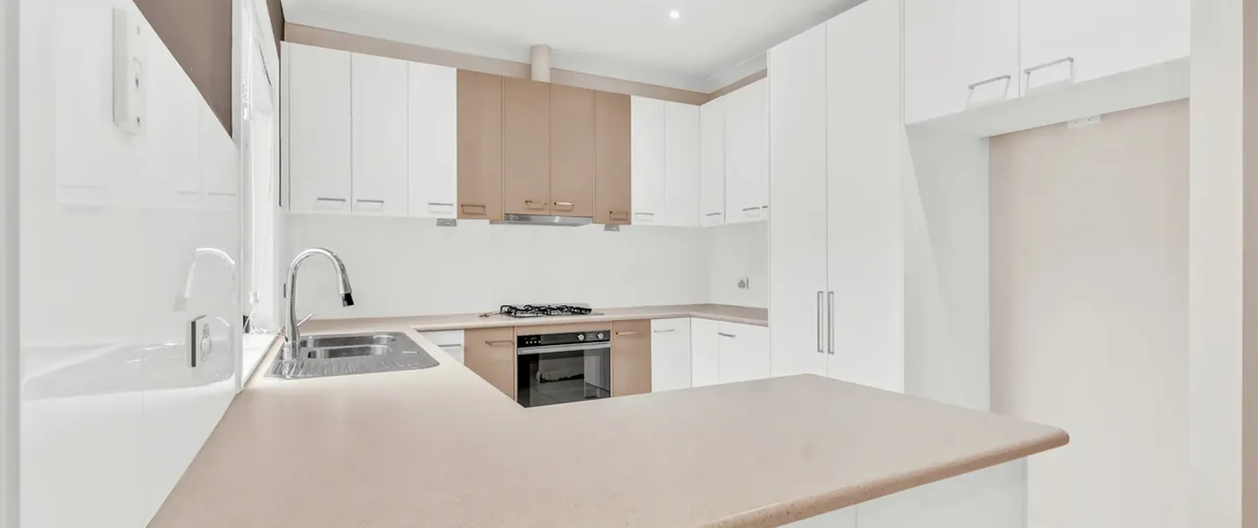 - Modern kitchen with ample bench tops, gas cooktop, double sink, dishwasher and plenty of storage space