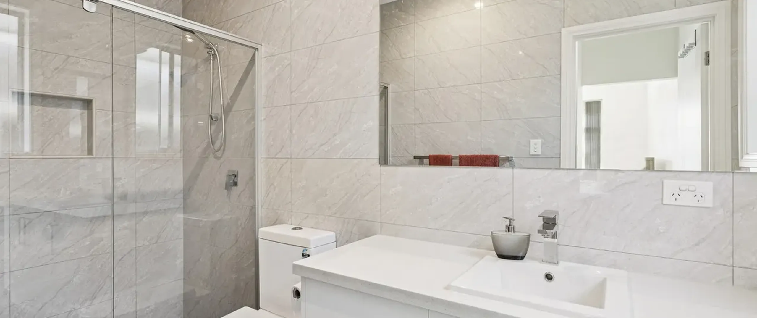 -Spacious master bedroom complete with a walk-in robe and private ensuite featuring an oversized shower and floor to ceiling tiles