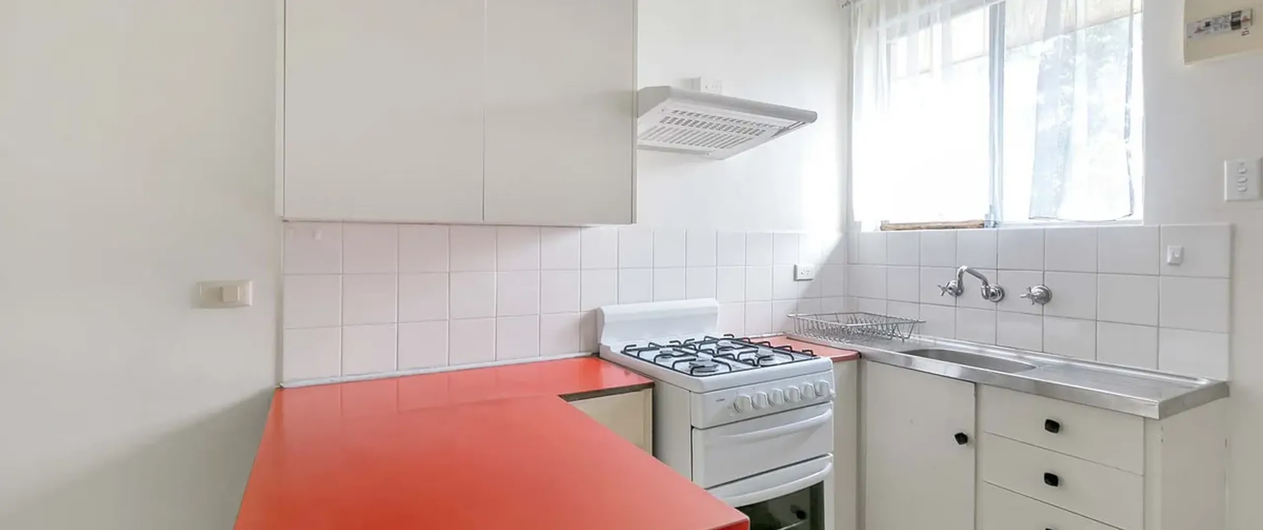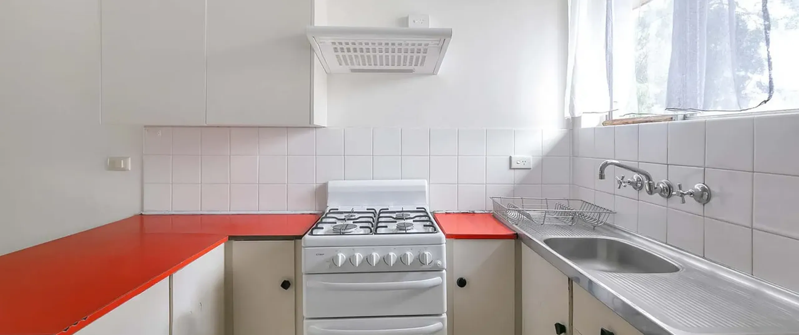 - Neat kitchen with gas cooking