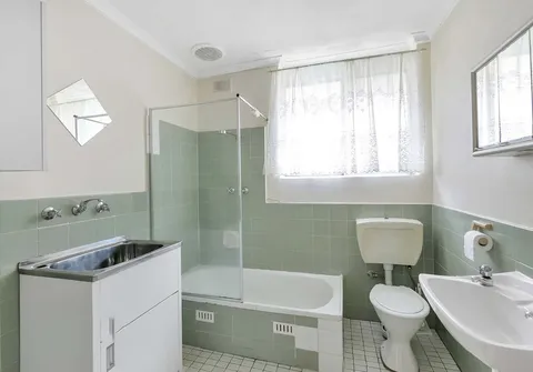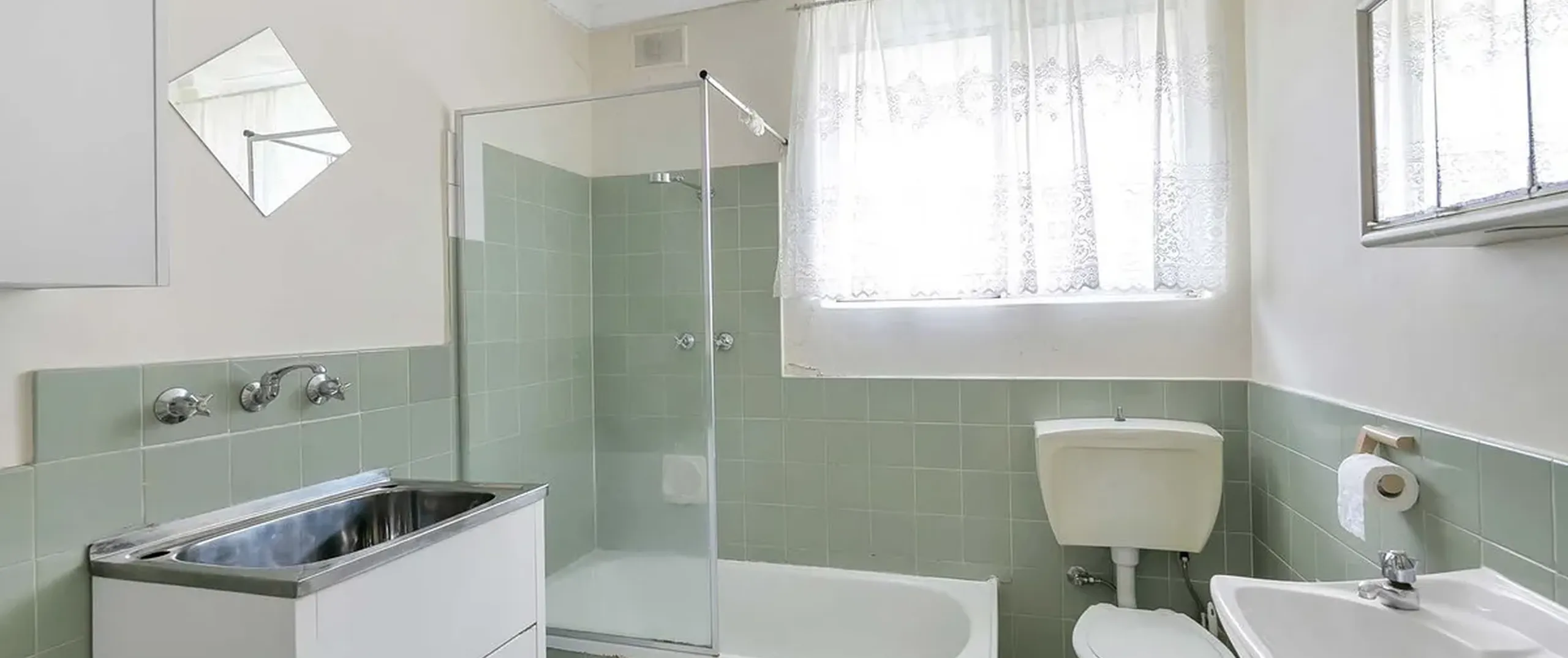 - Bright and airy bathroom with bath