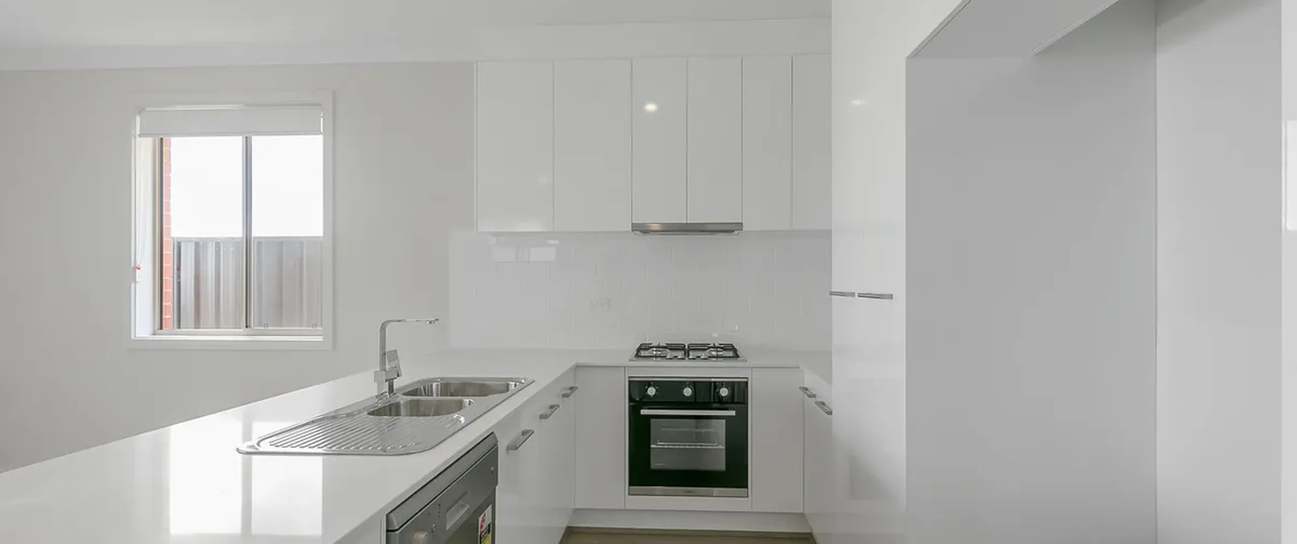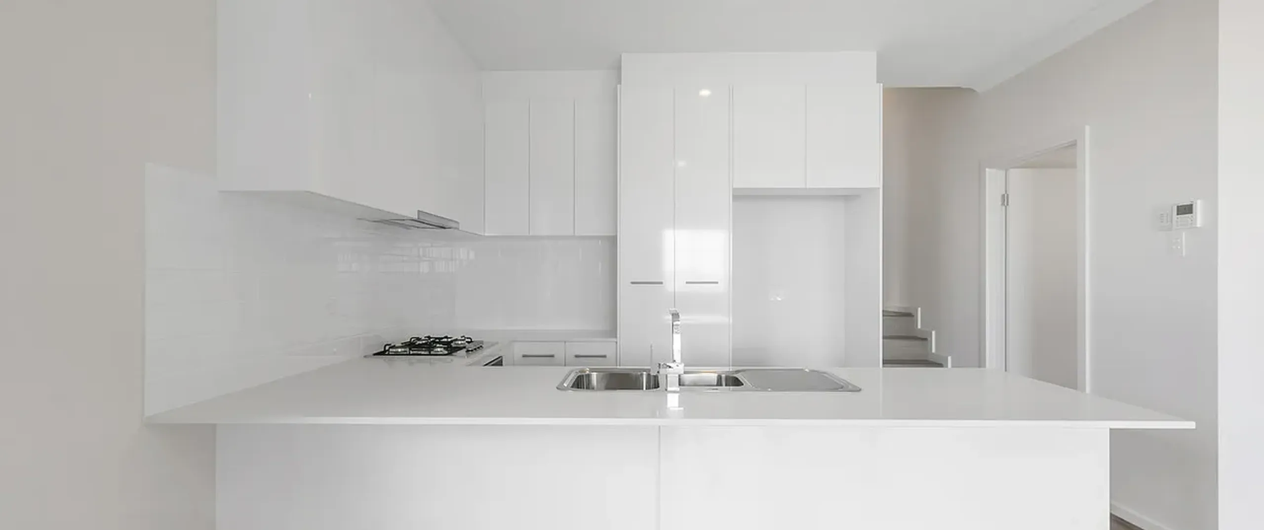 - Pristine white kitchen with breakfast bar, gas cooking and ample storage
