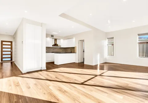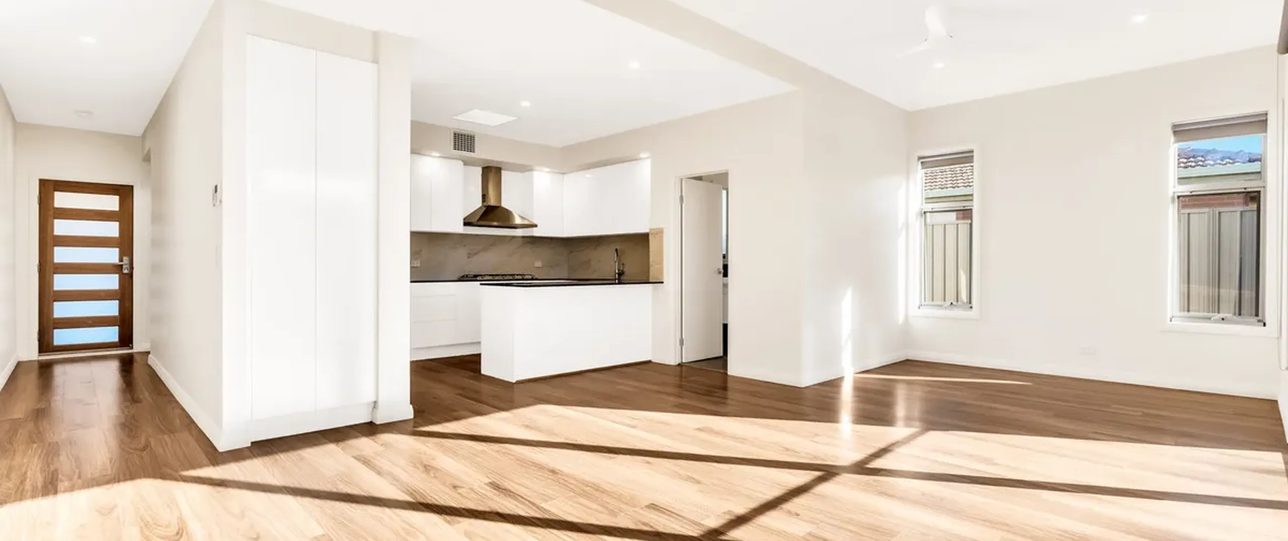 - Open plan living area on ground floor with floating timber floorboards and sliding doors to the backyard