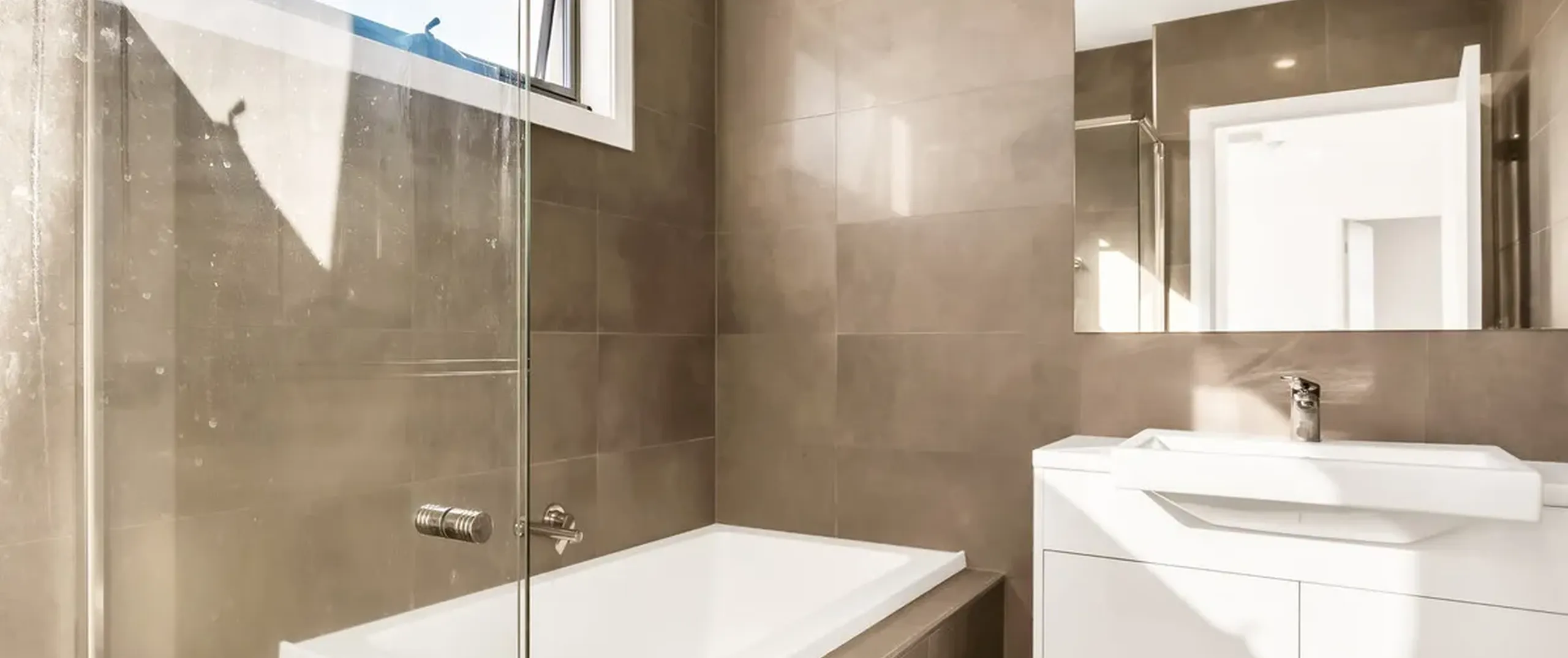 - Two-way dual access ensuite with floor to ceiling tiles, corner shower, toilet, vanity with below storage and large mirror